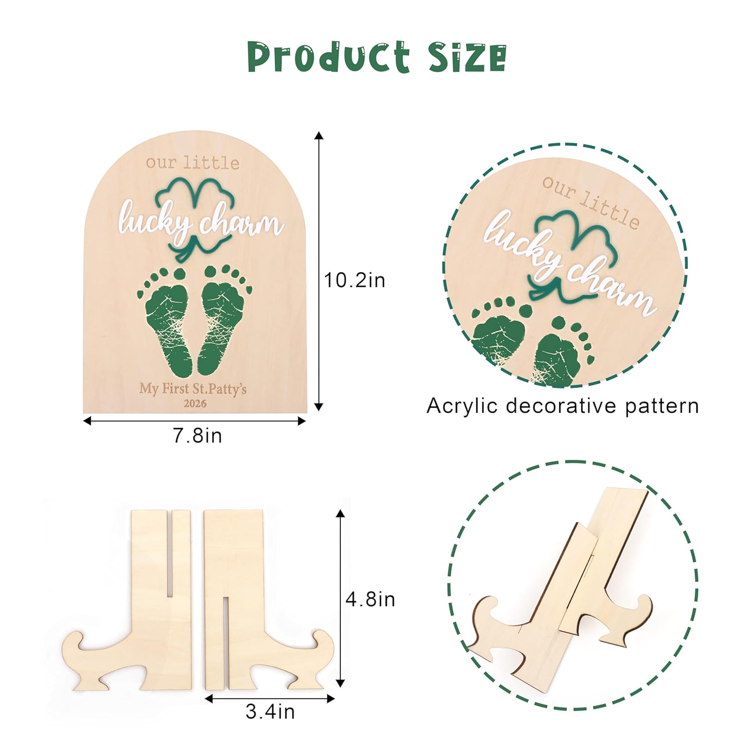 Our little lucky charm sign themed birthday party, you're ready to celebrate your little cutie St Did you have Patrick's Day birthday partyb> Add this vibrant four leaf clover board decoration to your little cutie's 1st birthday party to create a warm and welcoming party atmosphere. Your little cutie will definitely love itp> This small lucky charm themed decoration is suitable for decorating tables and serves as a centerpiece for home desktops, placed in bedrooms and living rooms; Especially suitable for St Patrick's Day themed party, gender revealing party, newborn baptism party decorationThis clover decoration will make your cute birthday party incredibly attractive and fun filledYour wishes can be expressed through this productImportant notice: The clover themed decoration section is not edible and is only used for decorationProduct specificationsMaterial:p> Size:p> Package includes1 x Clover Party DecorationFinally, thank you for browsing. If you think it's great, please gently put it in your shopping cart and enjoy it